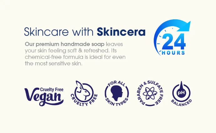 This combo pack contains Jasmine Soap (3 x 125 g), all vegan & handcrafted with rich, natural ingredients. Skincera Shea Butter moisturizing soap gently cleanses while leaving your skin soft, smooth, and nourished every day. Leaves your skin feeling soft and refreshed. Its chemical-free formula is ideal for even the most sensitive skin.