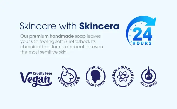This combo pack contains Mint Soap (3 x 125 g), all vegan & handcrafted with rich, natural ingredients. Skincera Glycerine moisturizing soap gently cleanses while leaving your skin hydrated, soft, smooth, and nourished every day. Leaves your skin feeling soft and refreshed. Its chemical-free formula is ideal for even the most sensitive skin.